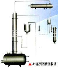 酒精回收塔由塔釜、塔身、冷凝器、冷却器、缓冲罐、高位贮罐六个部分组成,可用于制药、食品、化工等行业的稀酒精回收,本设备与物料部分均采用0Cr18Ni9不锈钢制造,具有良好的耐腐蚀性能,经久耐用。